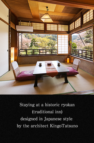 Staying at a historic ryokan (traditional inn) designed in Japanese style by the architect KingoTatsuno